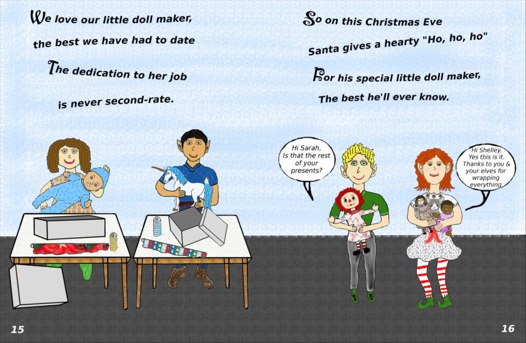 Sarah is our Master Doll Maker, and she creates all kinds of dolls, stuffed animals, a variety of heroes, soldiers, and so much more. With lyrical rhymes, adorable pictures, and a delightful storyline, Sarah is bound to be a favorite tale of your child’s, year after year.