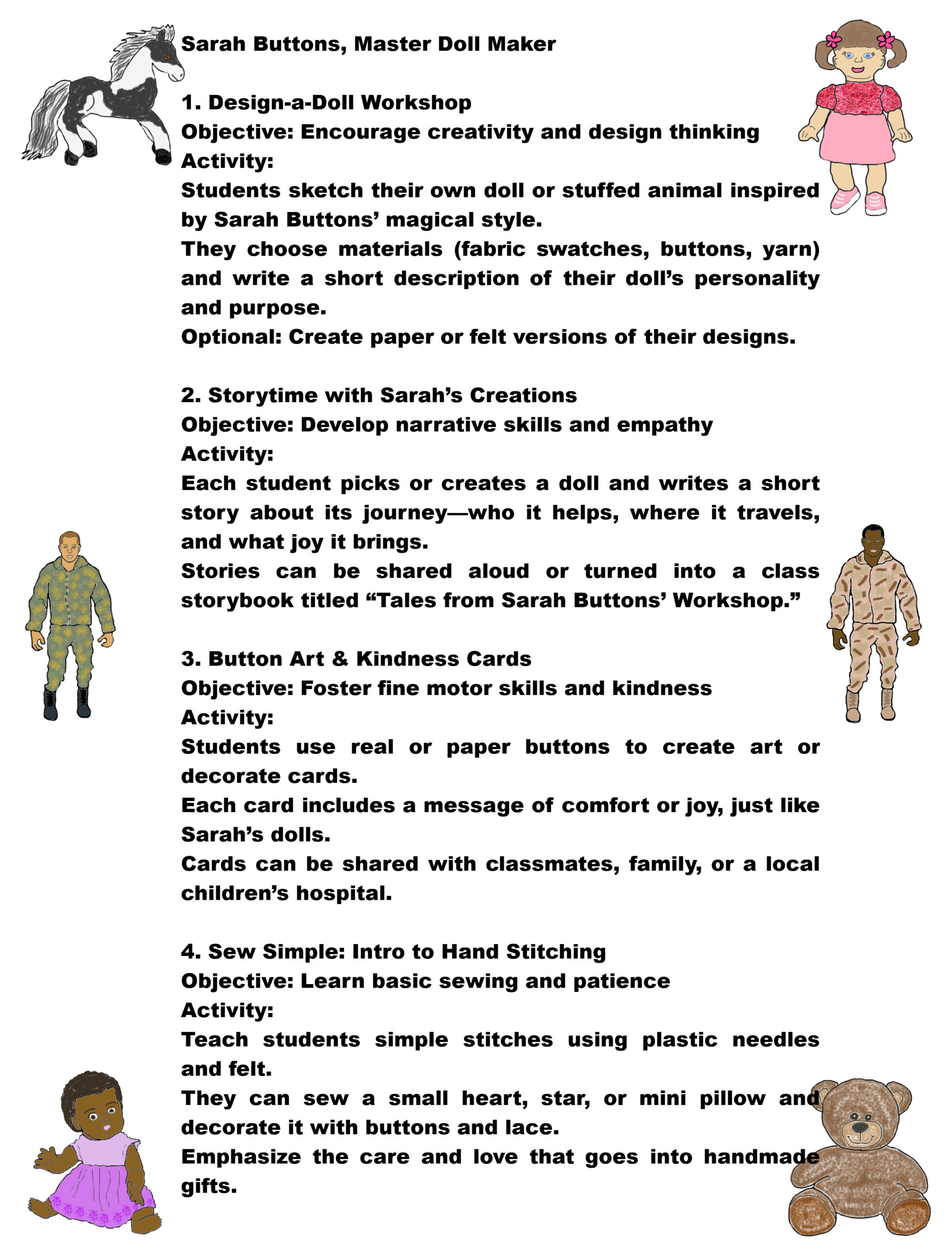 Sarah Buttons, Master Doll Maker—a charming entry in the Santa’s Elf Series by Joe Moore, with illustrations by Mary Moore. This story brings to life Sarah Buttons, one of Santa’s most essential helpers, who designs and creates everything from cuddly animals to brave action figures for children around the world.